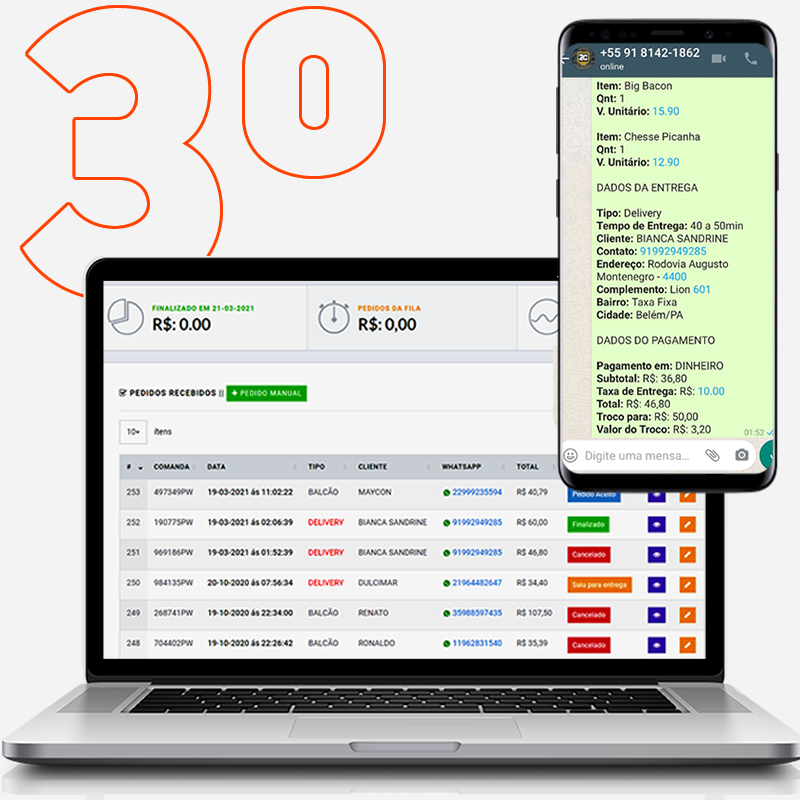Você recebe o pedido no seu WhatsApp e no Painel de Vendas